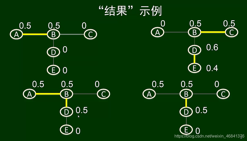 节点A的节点聚集系数 = 与A相邻的节点之间边的实际数与A相邻节点对的个数之比
