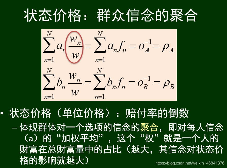人们参与市场活动时会带有一些信念和期望,而市场可以将这类信念合成为一个总体结果,这种总体结果的形式通常就是市场价格,表示对背后各种信息和信念的一种综合