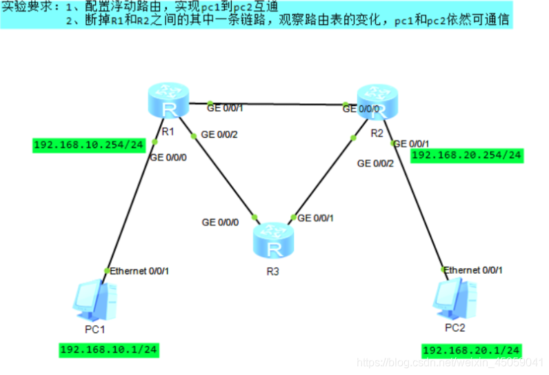【R3】ip route-static 192.168.10.0 24 11.0.0.1为了检查浮动路由是否工作,断开静态路由