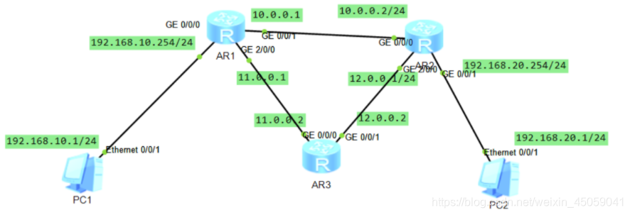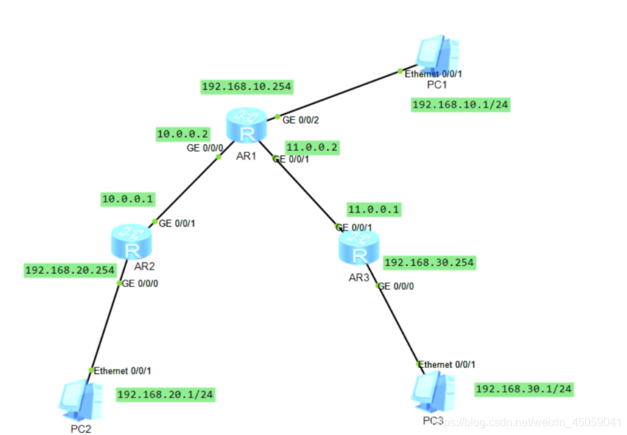 【R3】ip route-static 0.0.0.0 0 11.0.0.2