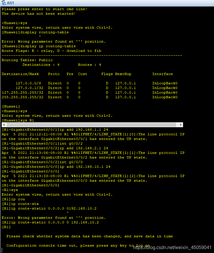 [R1-GigabitEthernet0/0/0]ip add 192.168.10.254 24