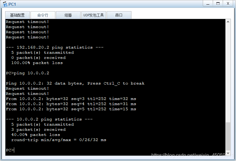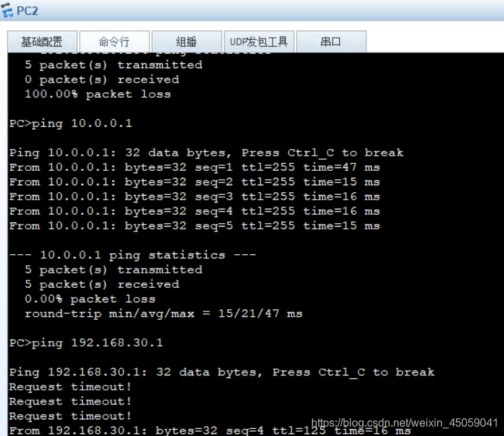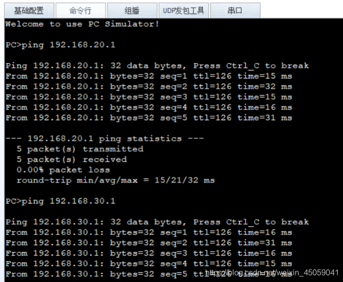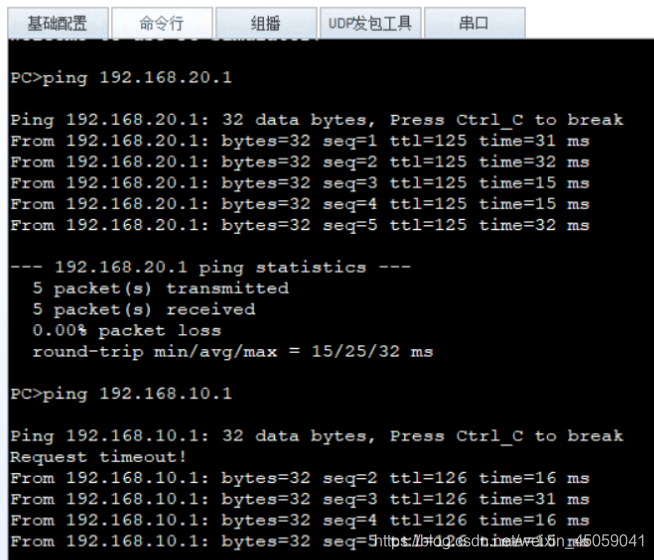 结果:成功ping通 需要注意的是两台主机的话 网段相同;两个接口的情况下,网关和IP地址相同(不同接口)