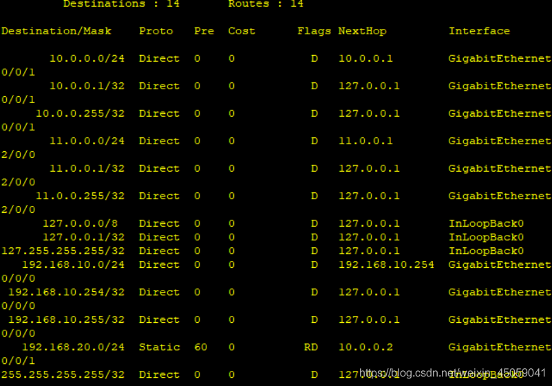 通过查看路由表 可以更直观的得到以下结论:浮动路由在静态路由消失后才会出现!!!