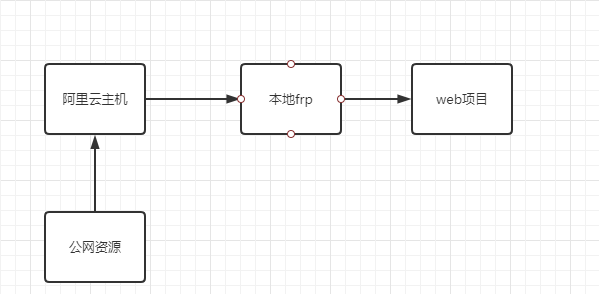 公网资源通过通过域名找到了阿里云主机,在frp配置文件中正好有该域名的配置,通过本地frp的nginx监听到80端口,将该域名下资源转发给web项目服务器,从而实现了内网穿透