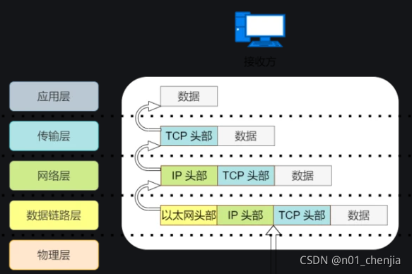 数据被封装完毕通过网络传输到接收方后,将进入数据的解封装过程,这将是封装过程的一个