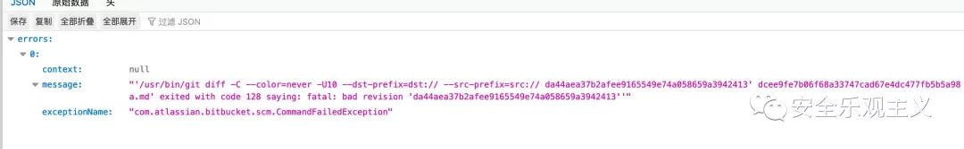 发现报错,到了这一步,漏洞雏形已经基本出现了。bitbucket使用了原生的git命令,处理客户端发出的rest请求。