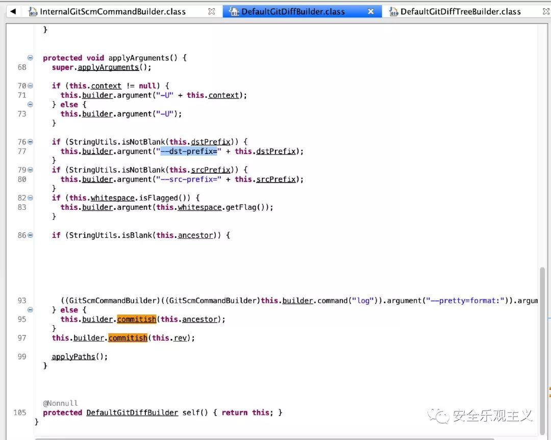 显然得知触发漏洞点存在于相关的git cli命令处理commit参数处。