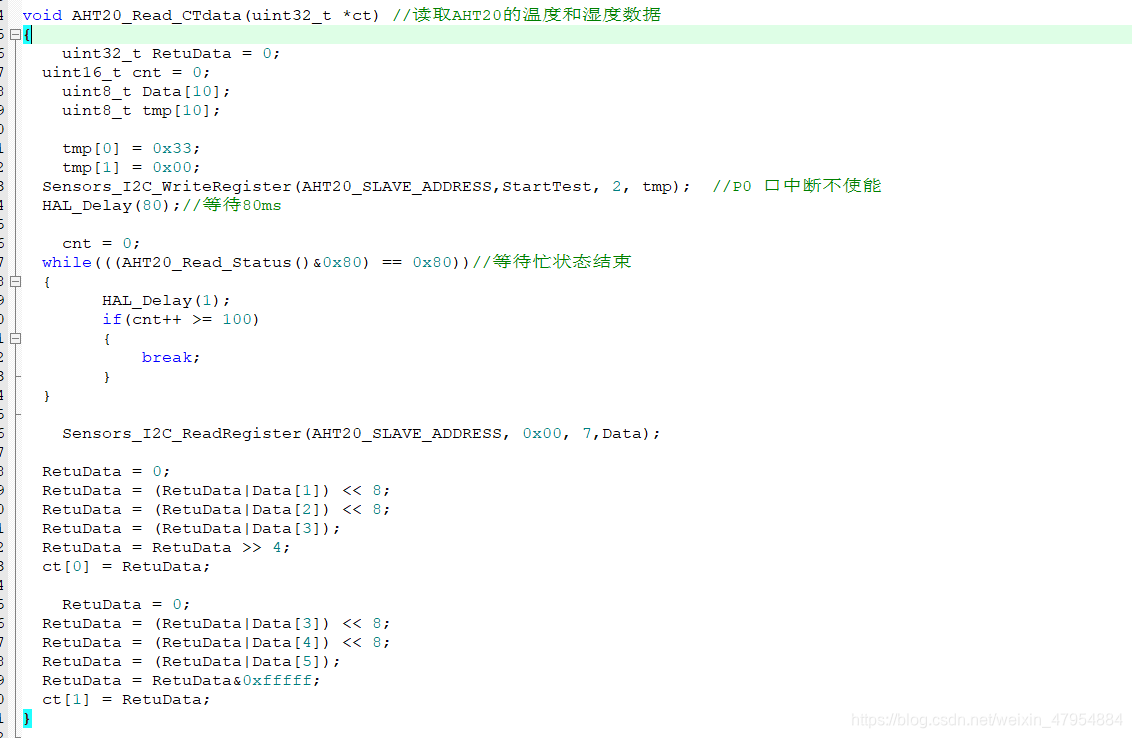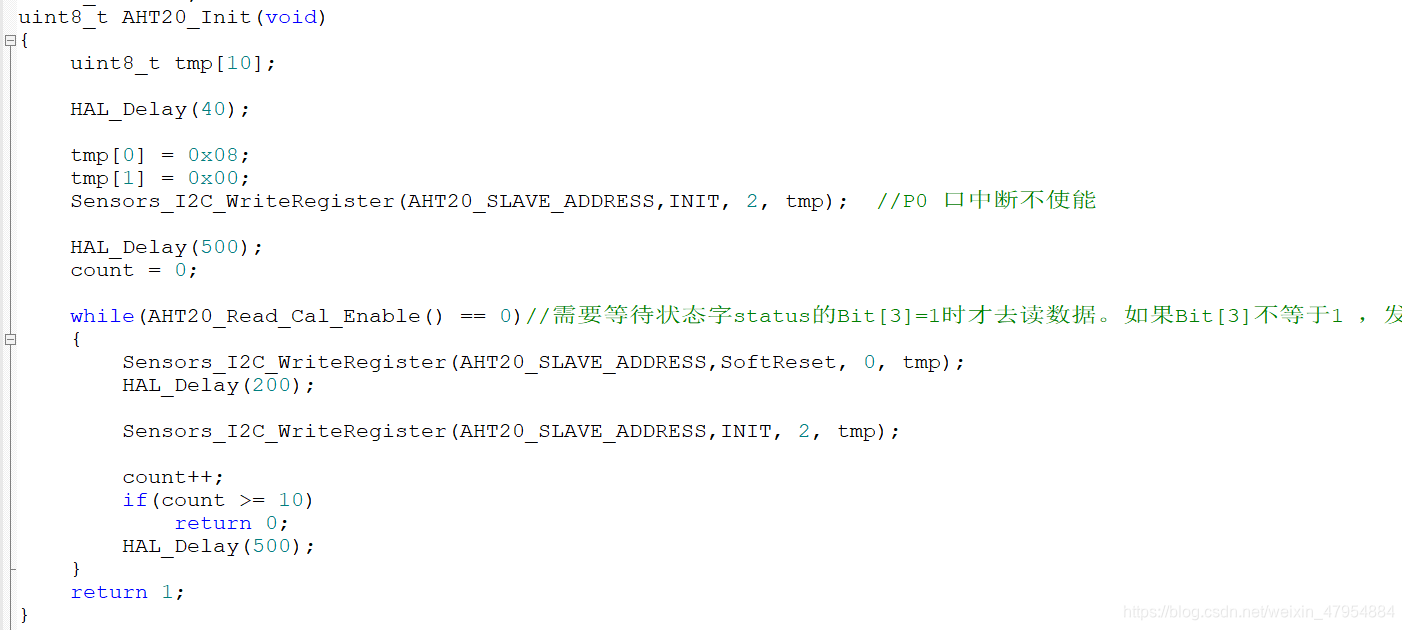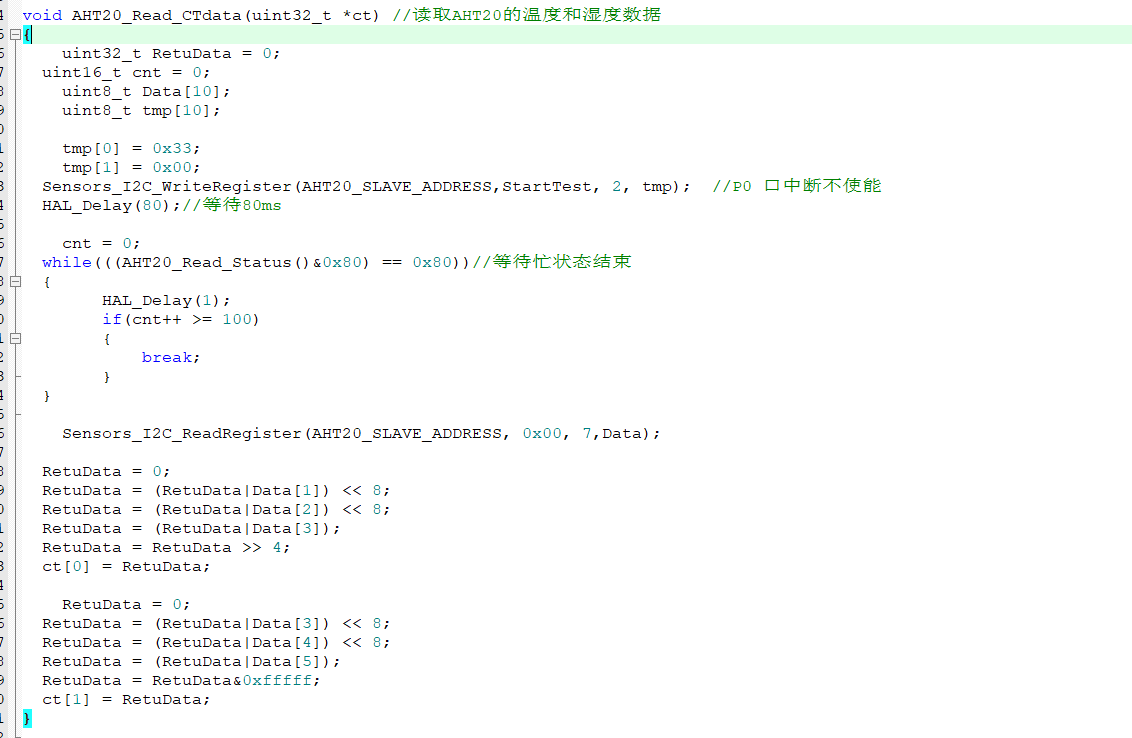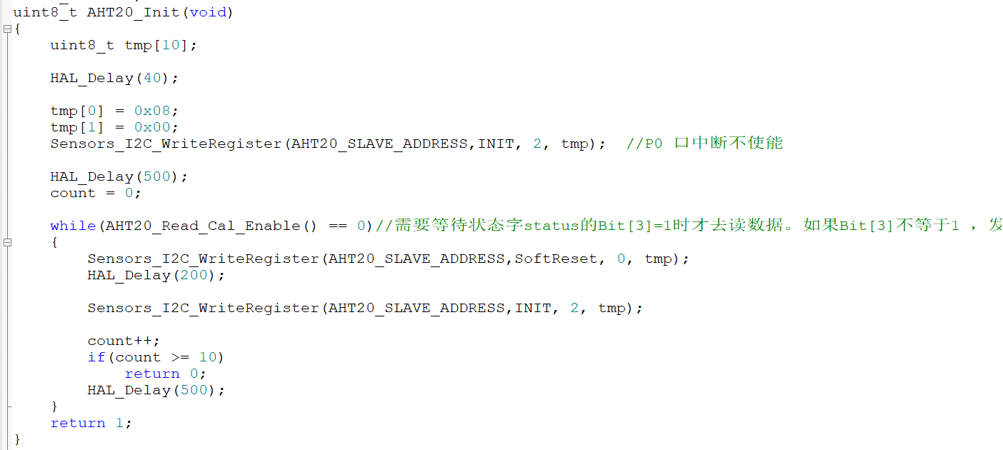 查询寄存器的bit[3]位如果是1那么就可以读取数据,如果不等于1,那么发送软件复位给AHT20
