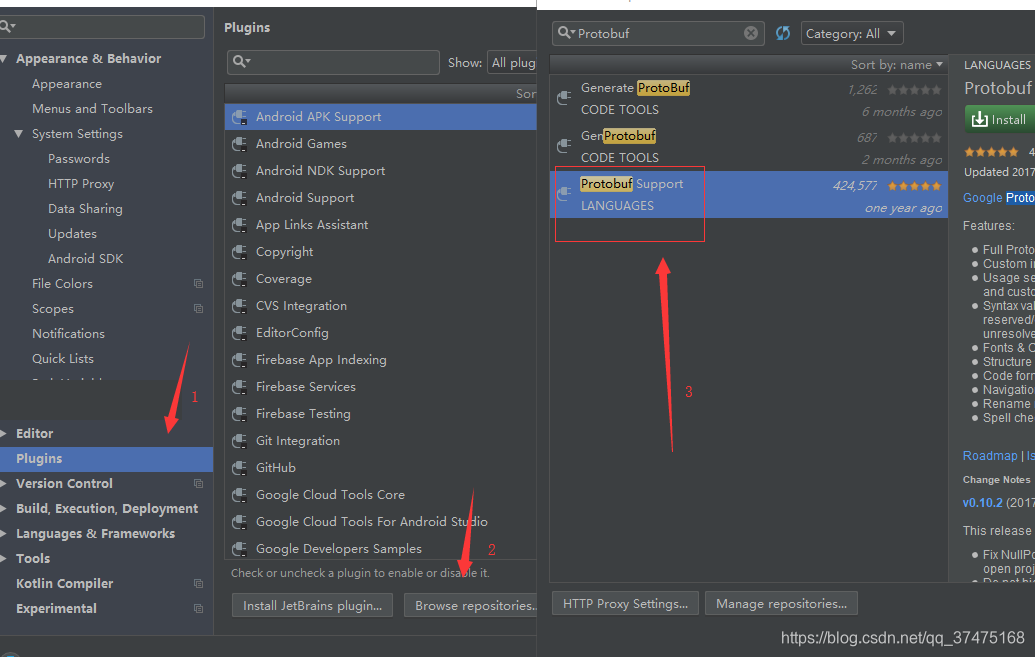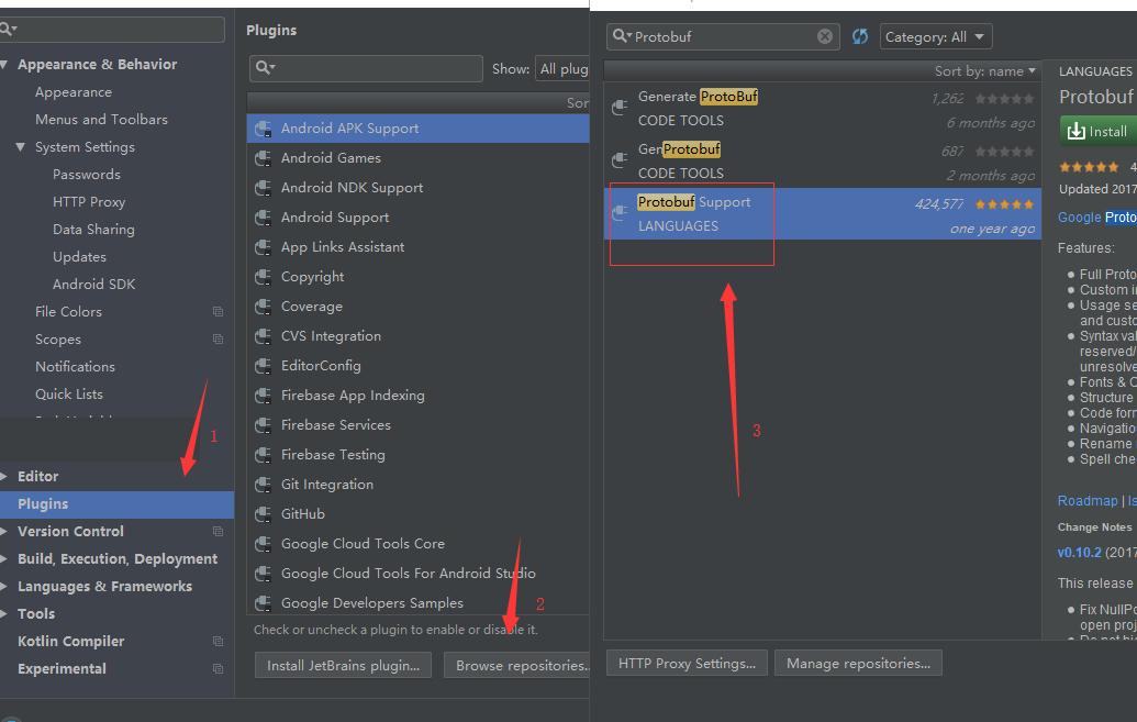 这样,protoBuf的环境就完成了,不过为了编写方便,我们可以安装一个protobuf Support插件,帮助我们开发。