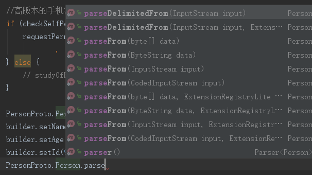 如此,就可以在MainActivity里使用protoBuf生成的类了,一般是用Builder通过get/set来设置属性,build()方法构建对象