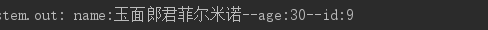 System.out.println("name:" + name + "--age:" + age + "--id:" + id);