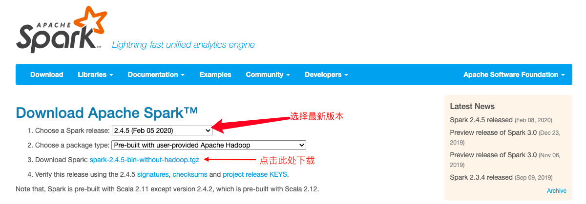 Spark官方下载地址: http://spark.apache.org/downloads.html