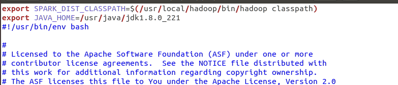export SPARK_DIST_CLASSPATH=$(/usr/local/hadoop/bin/hadoop classpath)