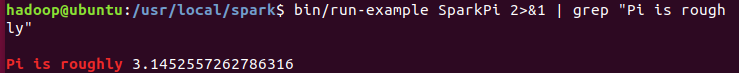 bin/run-example SparkPi 2>&1 | grep "Pi is roughly"