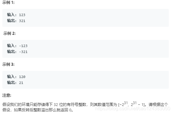 算法:题目 给出一个 32 位的有符号整数,你需要将这个整数中每位上的数字进行反转。