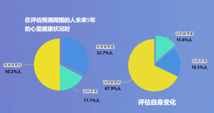 在预测未来5年心理健康状况的变化时,人们普遍表现出乐观的倾向,在评估预测周围的人未来5年的心理健康状况中发现。