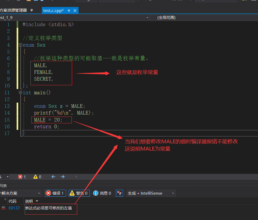(4)枚举常量 :适用于能一一列举的量,例如:性别可以列举为:男,女,保密。