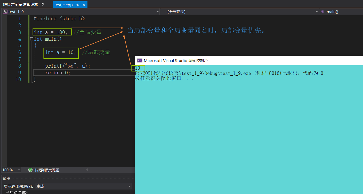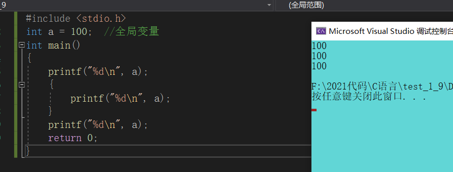 全局变量:代码块外部定义的变量。