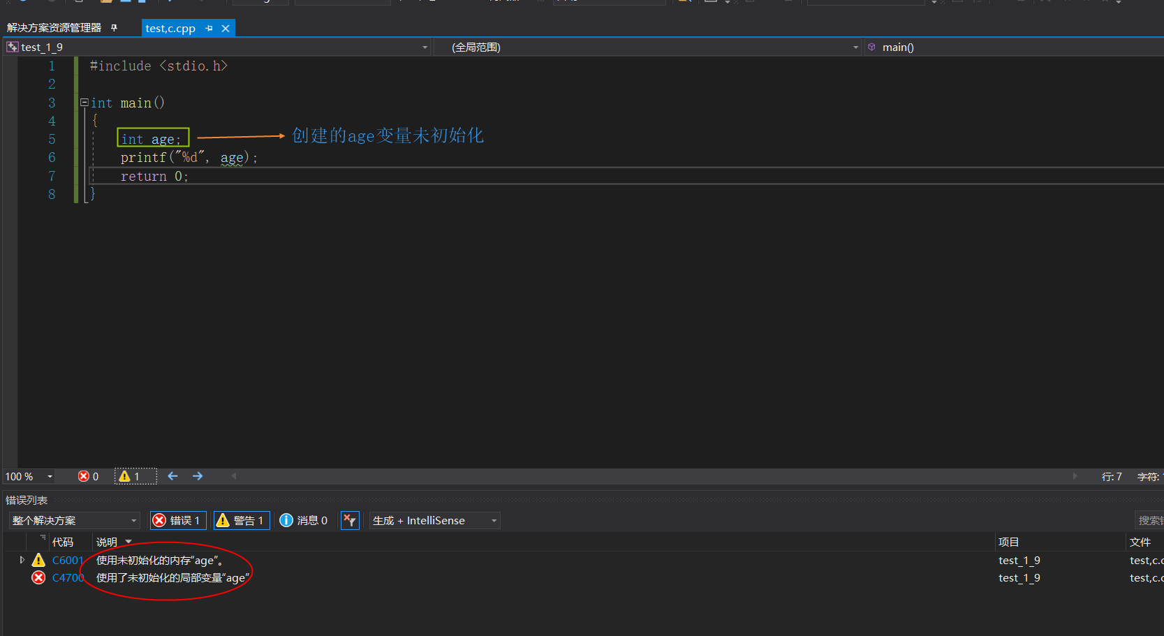 以上两张图片中第一个局部变量发生报错,而第二个全局变量未发生报错,这也更好的印证了全局变量和局部变量的作用域。