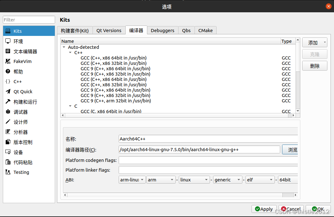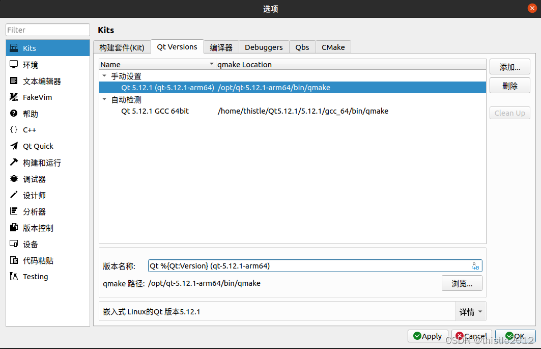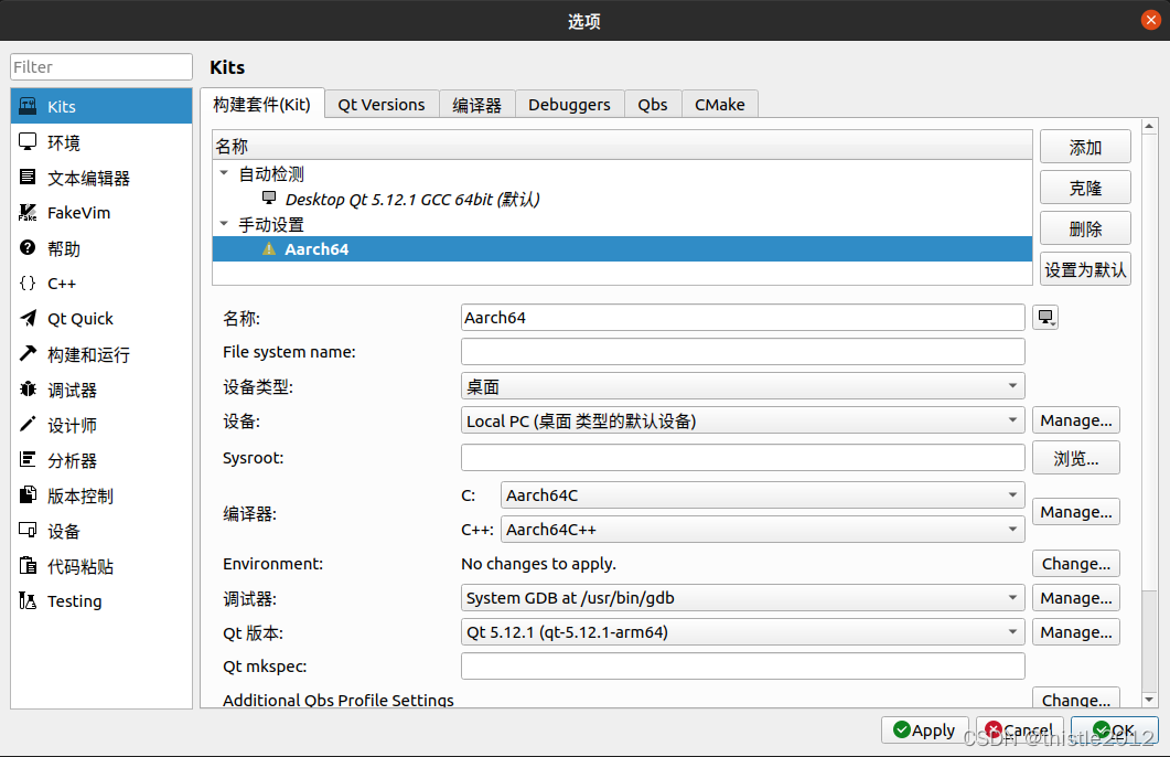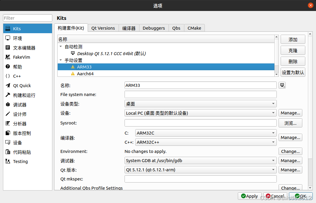 编译前确定好SDK路径。因为我需要编译两个版本,所以,我建了两个目录, /opt/qt-5.12.1-arm用来存放32位的,/opt/qt-5.12.1-arm64用来存放64位的