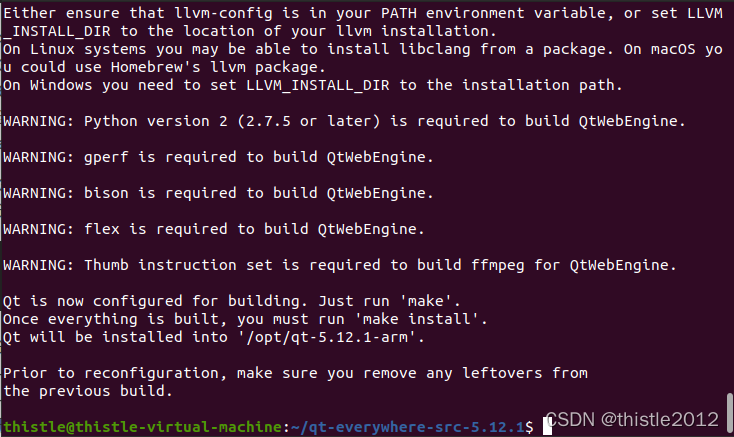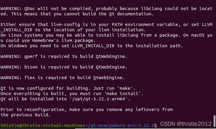 -prefix选项后面的路径就是第一步中定义的Qt SDK路径,对于不同的平台,注意目录要对应