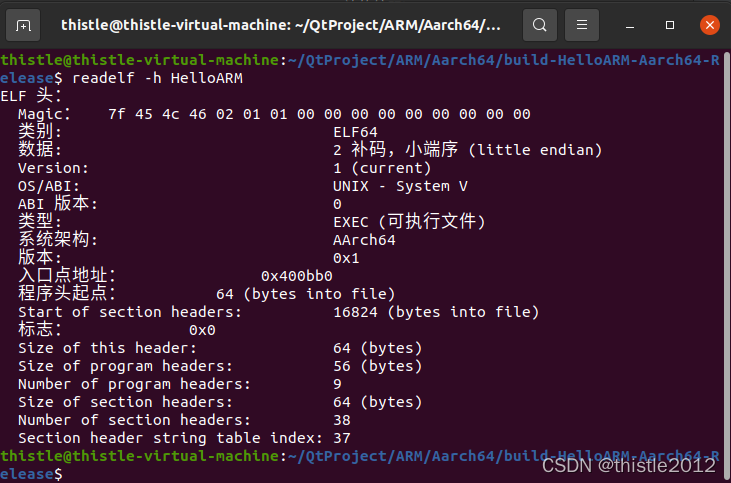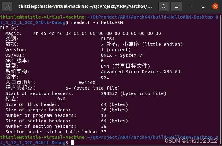 进入编译路径查询编译生成的二进制文件类型,如下所示,