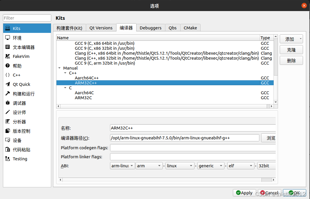 32位平台的编译器gcc-linaro-7.5.0-2019.12-x86_64_arm-linux-gnueabihf.tar.xz操作如下