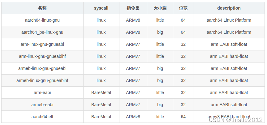 这里面版本很多,主要是大小端、armv7/armv8、32/64位、裸机/linuxdeng区别