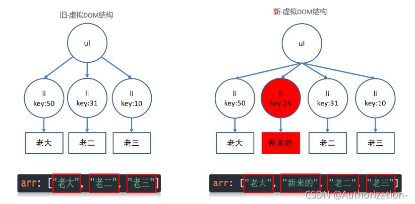 </script>有key - 值为索引 :还是就地更新;因为新旧虚拟DOM对比, key存在就复用此标签更新内容, 如果不存在就直接建立一个新的