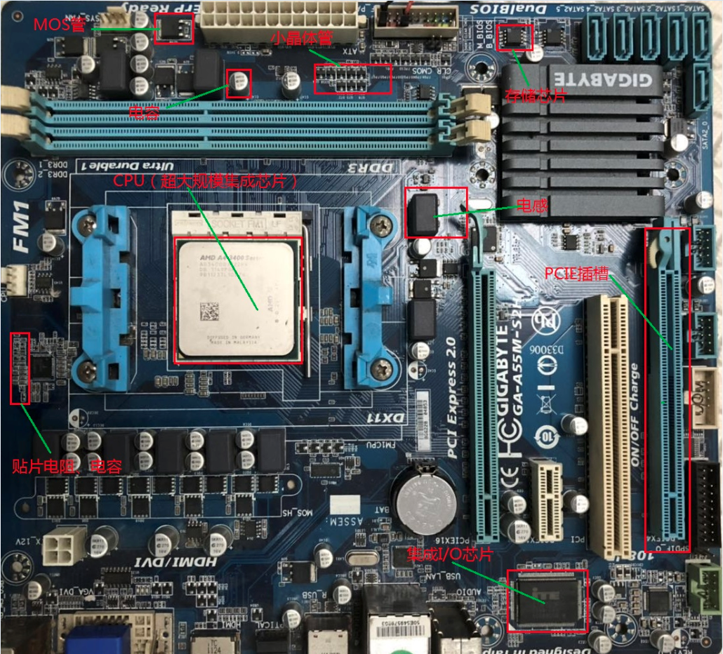 本文为入门级同学和零电子基础同学准备,有一定电子基础的请直接忽略,芯片从本质上说还是电路,因此有必要从电路板开始了解芯片工作过程,下面将简单介绍一块电脑主机板。