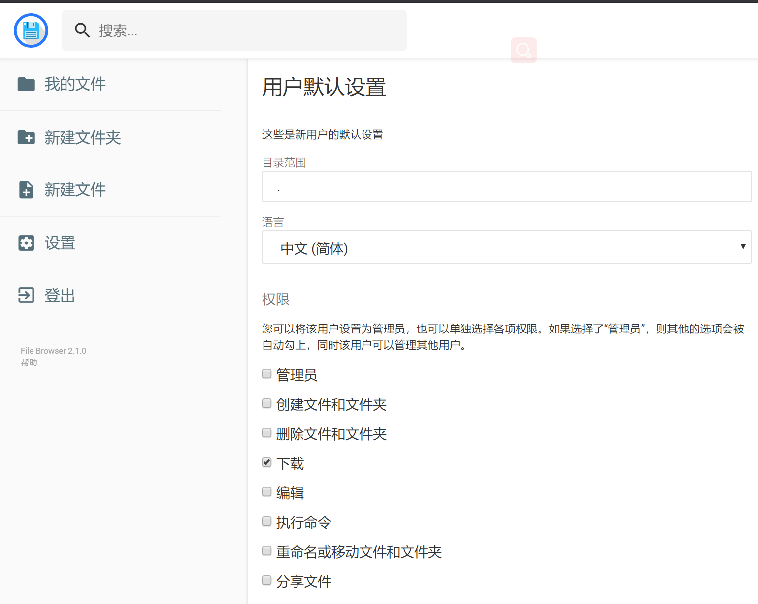 机器好的,上个nextcloud或者owncloud,我的需求只要能下载能上传即可,要不了那么多的功能,所以此处推荐一个轻量级文件服务器filebrowser。