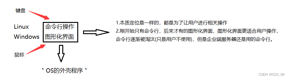② shell : 接受用户的输入,交给OS执行,得到结果反馈给用户