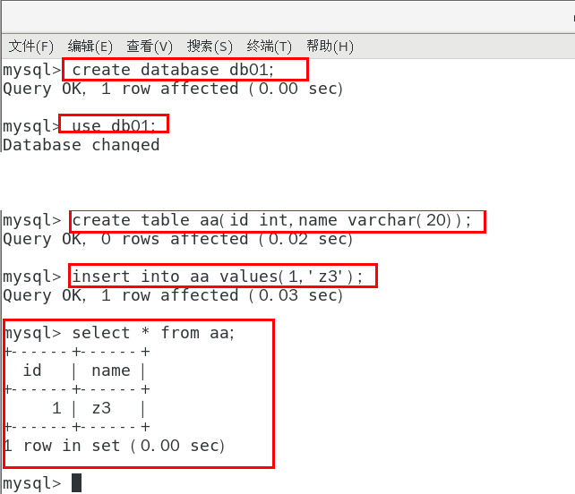 1.验证使用,建库建表插入数据