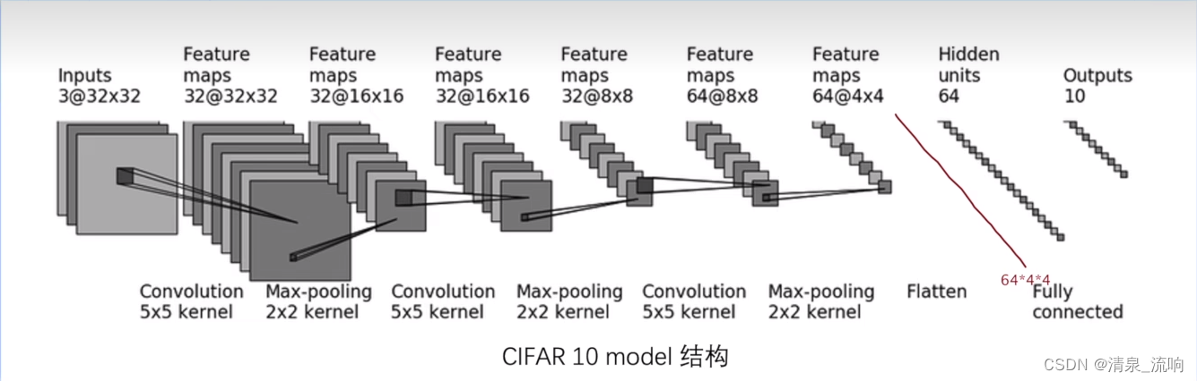 print(output.shape)torch.ones((64,3,32,32))表示batch_size=64,channel=3,高H=32,宽W=32,cifar10的图片就是3通道,宽高就是32的