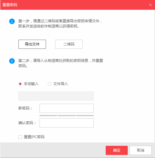 三、将相应的安全码、秘钥、导入文件在SADP软件中填好或导入,即可恢复密码。