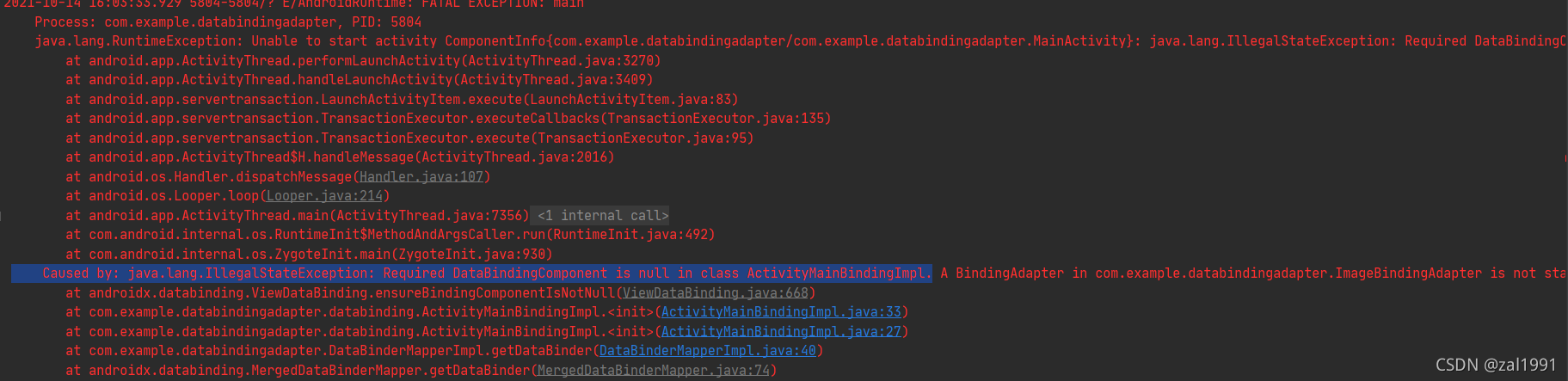 Caused by: java.lang.IllegalStateException: Required DataBindingComponent is null in class ActivityMainBindingImpl.