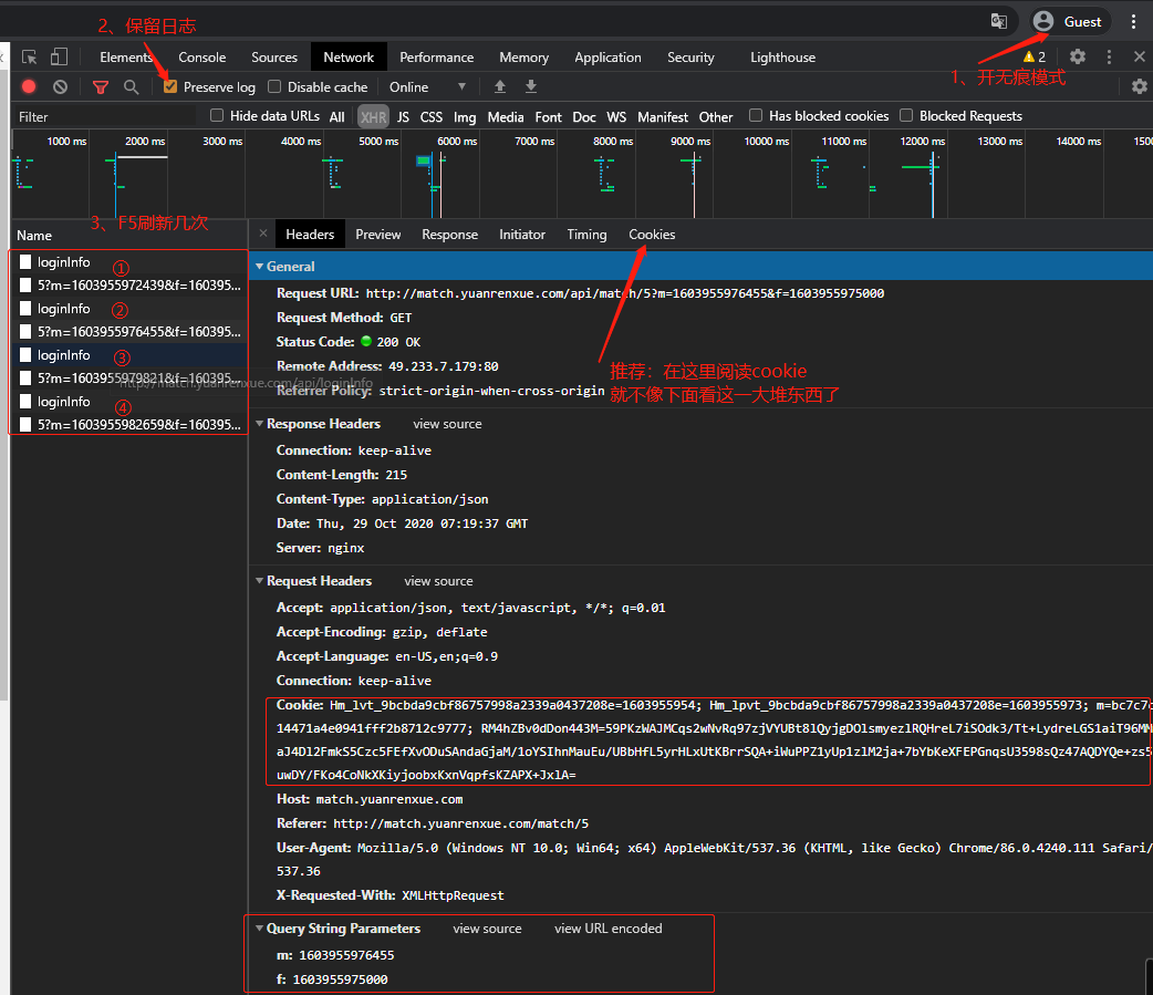 经过几次模拟请求,我们发现参数m、f还有cookie里面都是不能少的(cookie如下):