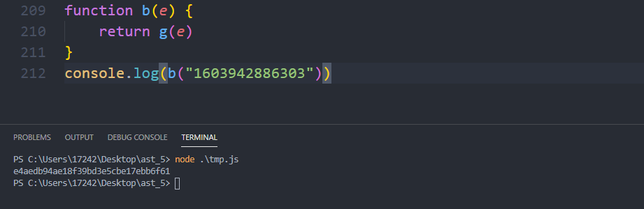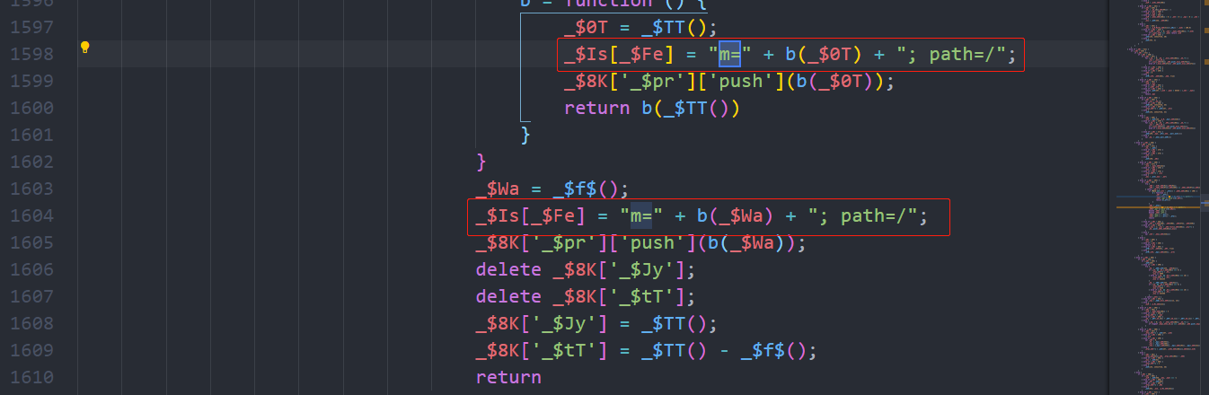 这样子就很明显了!!!m就是在这里生成的!!!存在一个b()函数!!!那么我们现在就将整个代码里面b函数及b函数里面调用的函数全都拿出来!!!如果通过node调试的时候存在某些变量找不到的,通过控制台打印看看!!!很大可能就是定值!