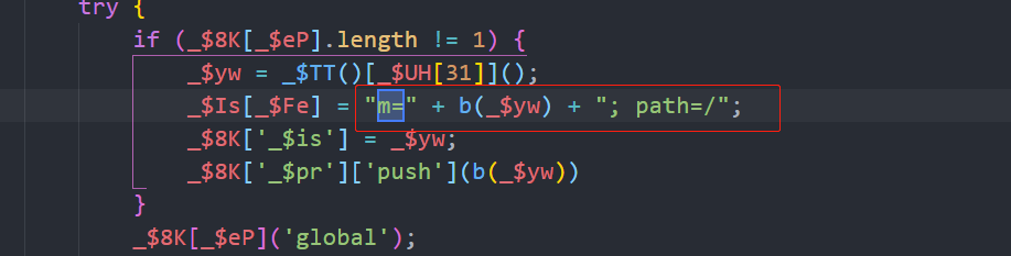 }我们直接打印看看_$yw,看看是什么(为什么打印_$yw?如下图):这里我们只是测试传给b()函数的到底是啥格式的数!!! 生成m的时候传给b到底是啥,下篇再做讨论!!!
