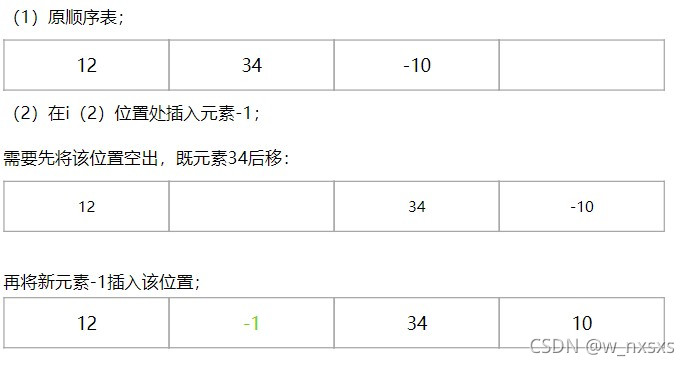 在顺序表的某个位置插入一个元素,顺序表中元素的前后逻辑关系会发生变化,例如在顺序表第i个位置处插入一个新元素。