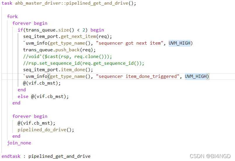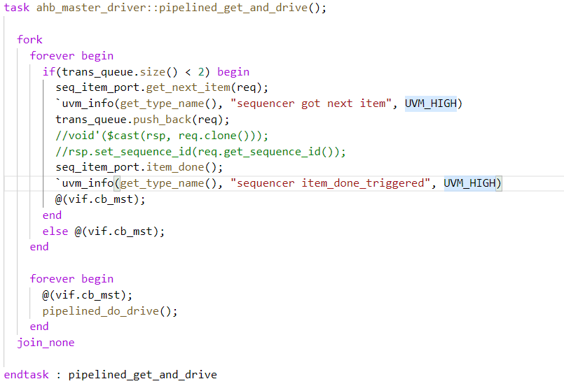 1、trans的获取与缓存:在driver中实现对trans的get并且进行缓存,由于AHB实现的是二级流水线,因此trans的缓存队列深度为2。