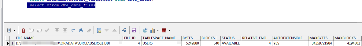 datafile 'D:\ORA\ORACLE_INFO\ORADATA\ORCL\TEST.DBF'