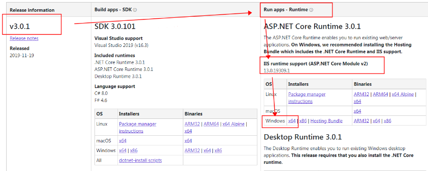 (1)安装AspNetCoreModule托管模块(已安装则跳过,选择跟创建项目时一样的版本,不然iis运行时会报.net core入门-发布及部署_异常(处理程序“aspNetCore”在其模块列表中有一个错误模块“AspNetCoreModuleV2")处理) 这个错 https://dotnet.microsoft.com/download/dotnet-core