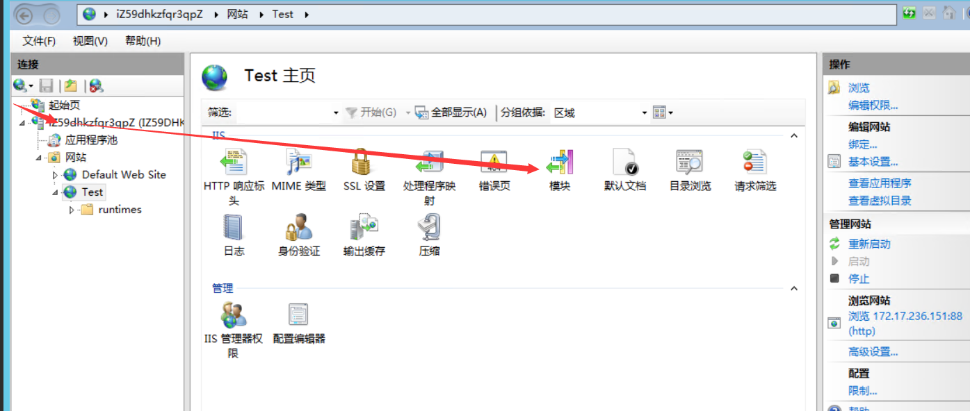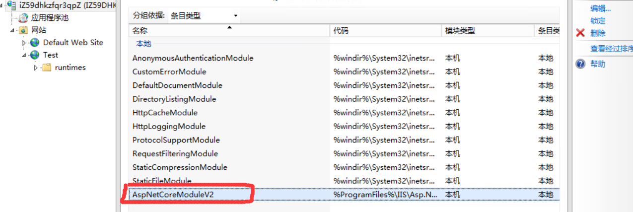 (2)安装之后在模块里可以找到AspNetCoreModule就说明成功了(如果你看不到 AspNetCoreModule , 运行肯定就是有问题的)