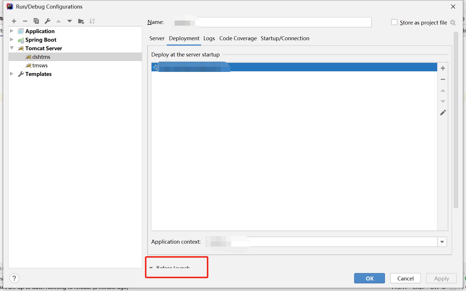 1.将tomcat服务配置中的before launch中的数据清空