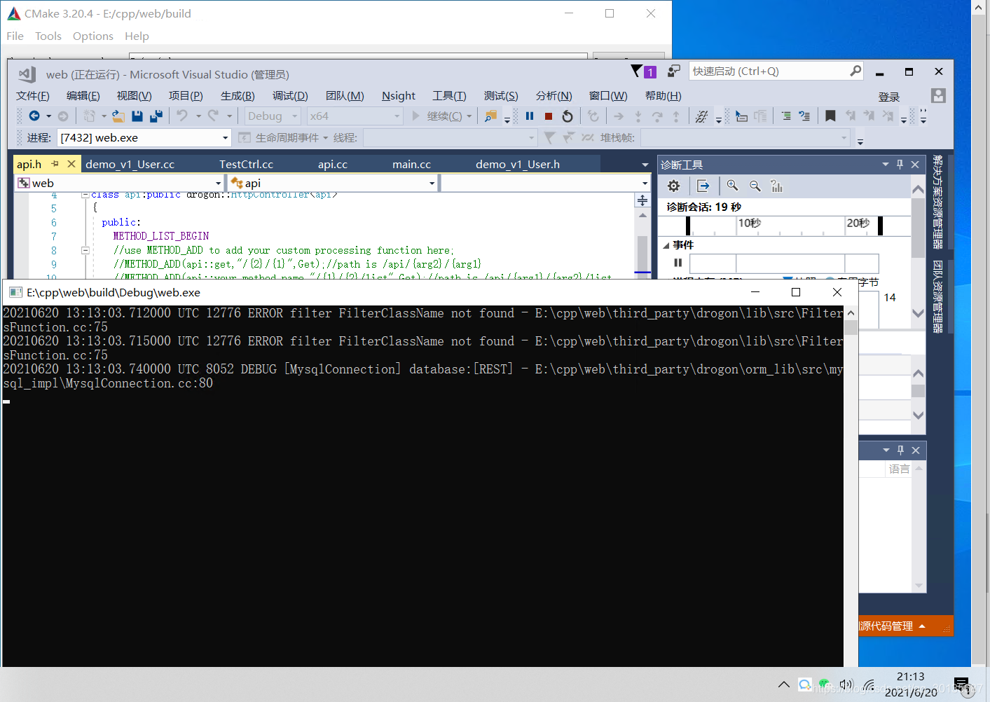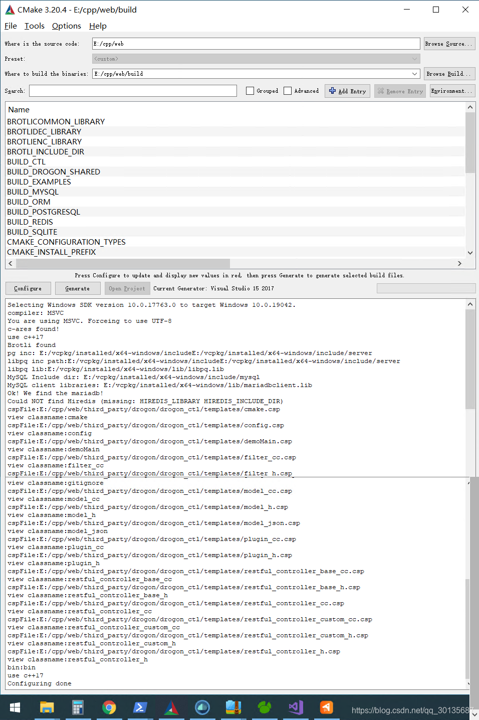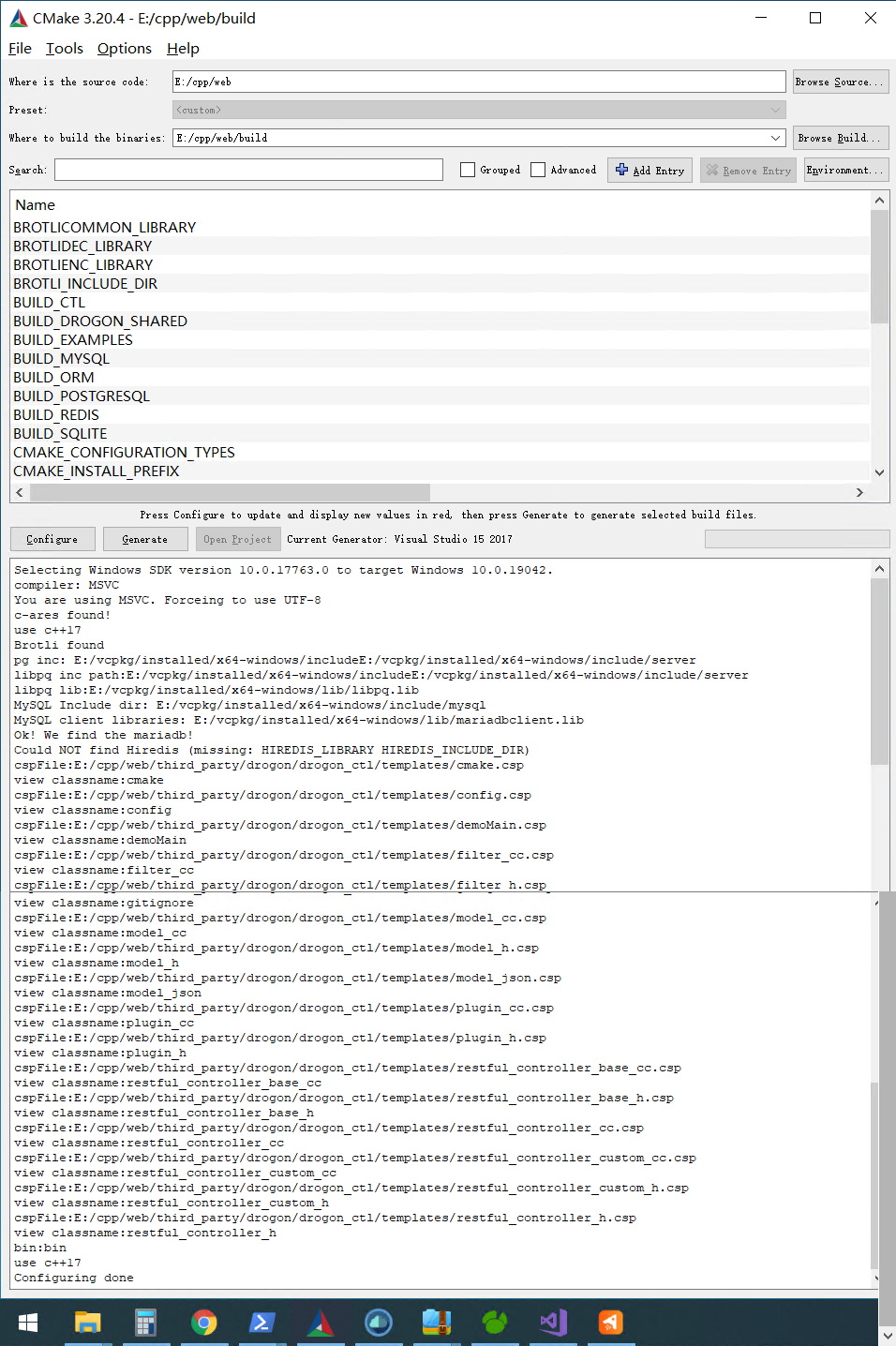 cmake -DCMAKE_TOOLCHAIN_FILE=D:/vcpkg/scripts/buildsystems/vcpkg.cmake -DVCPKG_TARGET_TRIPLET=x64-windows ..编译通过后就可以使用cmake-gui工具编译刚刚创建的web项目
