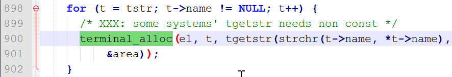 从第900行来看,应该是tgetstr函数返回值有问题。tgetstr是ncurse库中的一个函数,为了更好的解决这个问题,有必要来了解一些终端编程的基本概念。