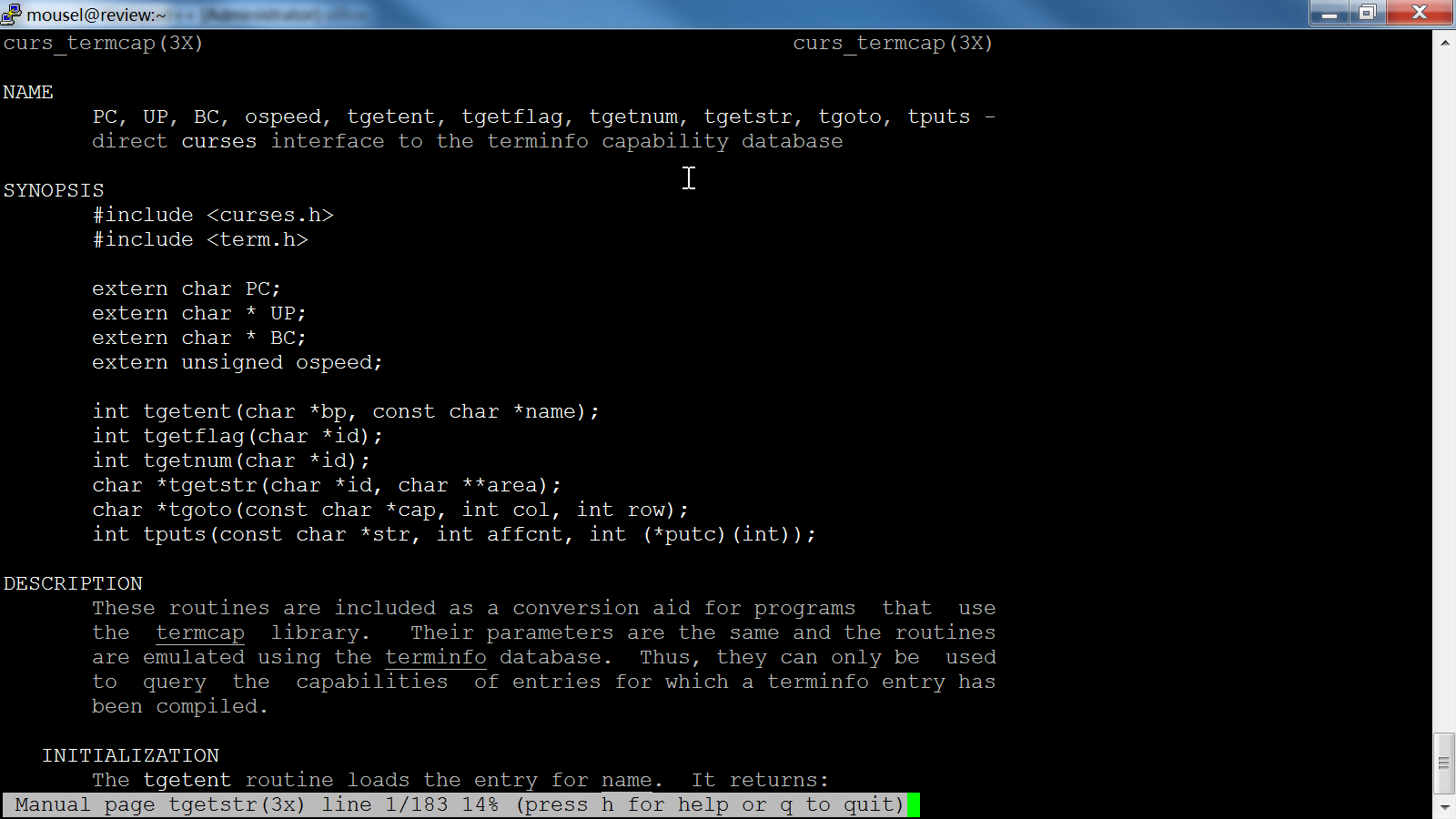 这里引用一段tgetstr的使用说明(来源: The Termcap Library - Interrogate ):