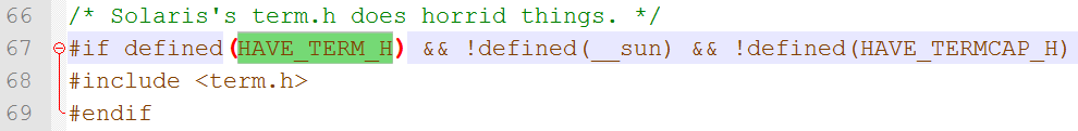 也就是说由于第一次make时没有安装ncurse依赖库,导致缺少term.h,导致HAVE_TERM_H没有被定义。所以怎么解决这个问题也就比较清楚了。