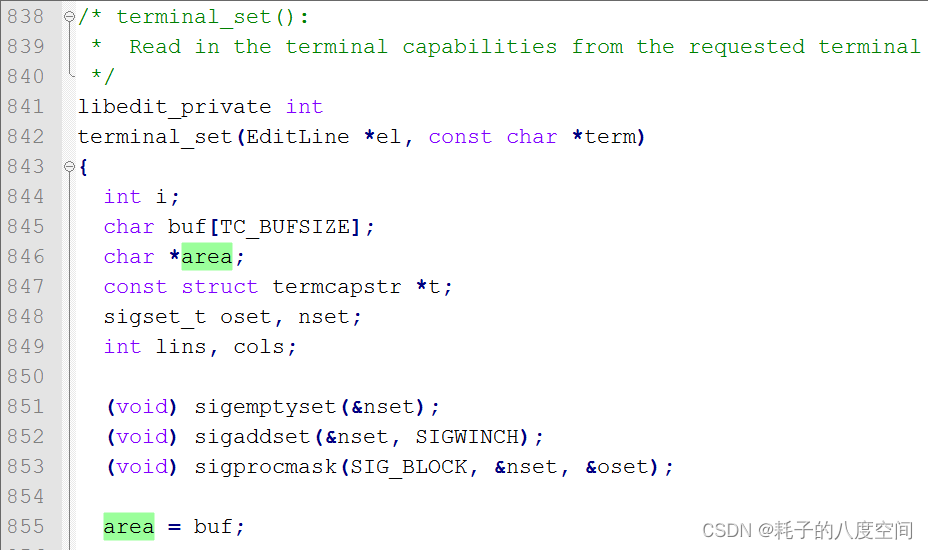 #6 0x000000000040924a in main (argc=<optimized out>, argv=<optimized out>) at /opt/resource/mysql-8.0.21/client/mysql.cc:1403来看看terminal.c 350行附近的内容: